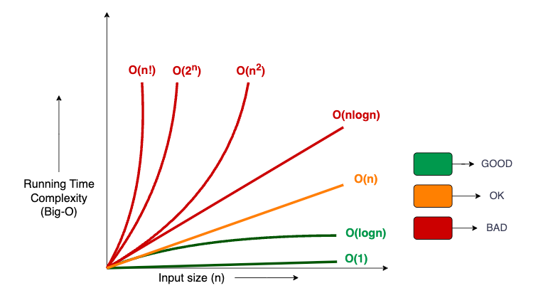 O(N)is orange, which is ok, but - Any algorithm that does not fall under the above two categories is bad.
