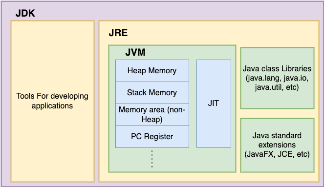 - JRE (Java Runtime Environment): End-users use the JRE to run Java applications.